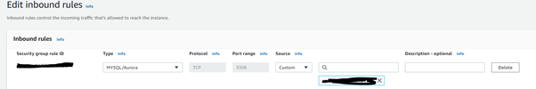‘EC2’의 보안 규칙에 있는 인스턴스의 보안규칙 아이디를 인바운드 규칙의 MYSQL/AURORA에 추가해주어야한다.