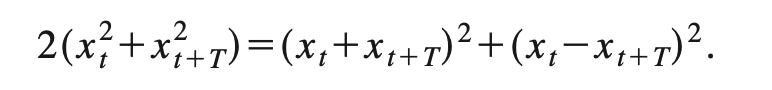 r=T일때, 분자인 d(r)은 비주기적인 값에 비례하고, 분모는 0-T사이 d(r)의 평균이므로, 대략적으로 signal power의 2배정도 되는 값이다.